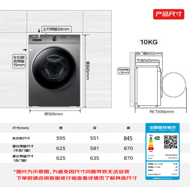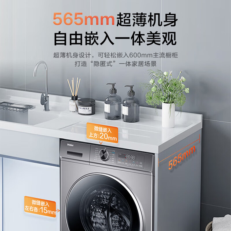 海尔(Haier)国家补贴丨小恒星全自动滚筒洗衣机10kg 智能投放超薄平嵌六维减震 1.1洗净比 XQG100-BD1216到手价格1999元。