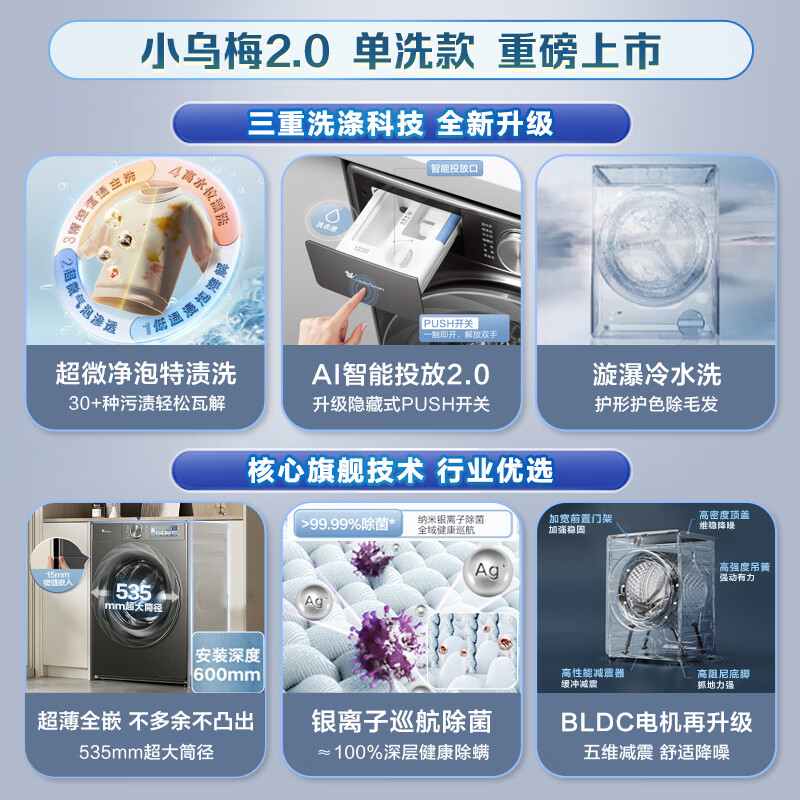 小天鹅(LittleSwan)滚筒洗衣机全自动家用【小乌梅2.0 TG100RVICPRO】超薄10公斤 家电国家补贴20% 以旧换新 一级能效到手价格4199元。