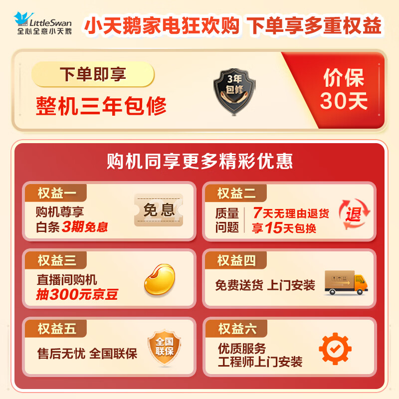 小天鹅TB75V22安装师傅来得挺快的,也会提前联系,没有额外消费,水龙头不合适,也能自己买。买了之后再安装。洗衣机操作简单,配合国补也便宜。外形外观:外观很好 实用洗净效果:非常好容量大小:容量很大 很喜欢 有喜欢的可以放心购买洗衣机还是大牌子的好,质量靠谱耐用,也节能,这款性价比相当不错,衣服能装很多洗得干净,主要也是价格亲民,声音还可以接受级能耗,彩色显示,智能控制,选择多样,忘记某些衣服要洗了,还可以添衣!品牌不错,值得推荐洗衣机品牌的洗衣机,质量很好口碑不错,一直在关注这款洗衣机,看到有活动赶紧下手了,收到货发现果真不错,是我想要的款式。