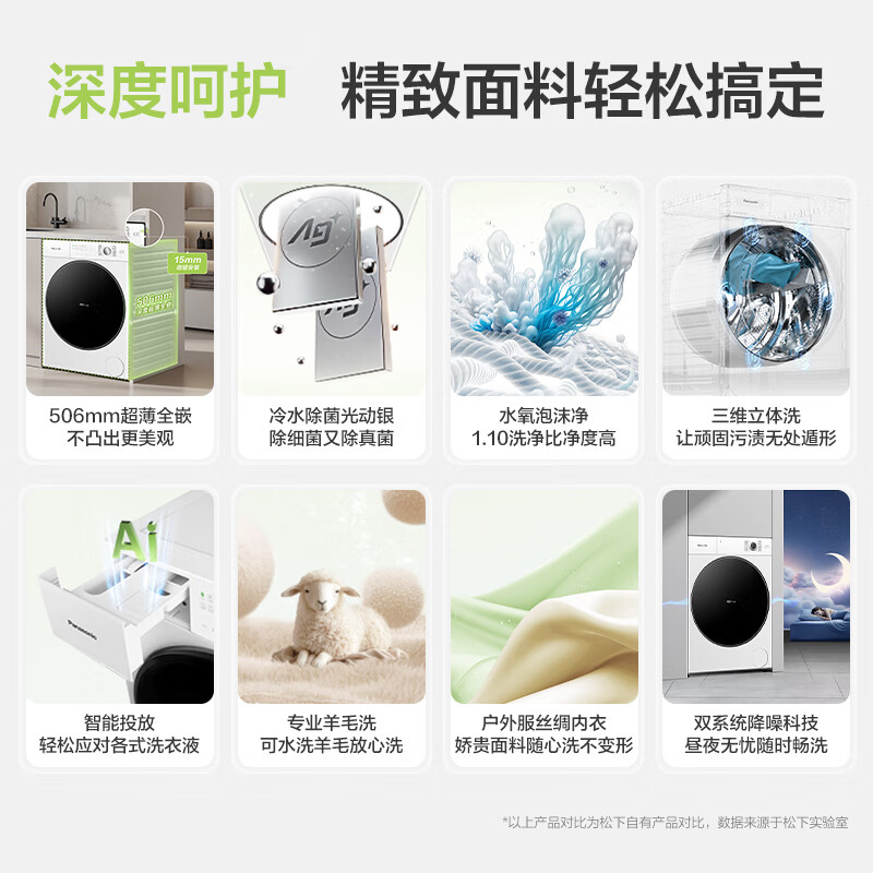 松下(Panasonic)滚筒洗衣机全自动 506超薄全嵌【小薄荷】10公斤 水氧泡沫净光动银除菌 智能投放830M到手价格4799元。