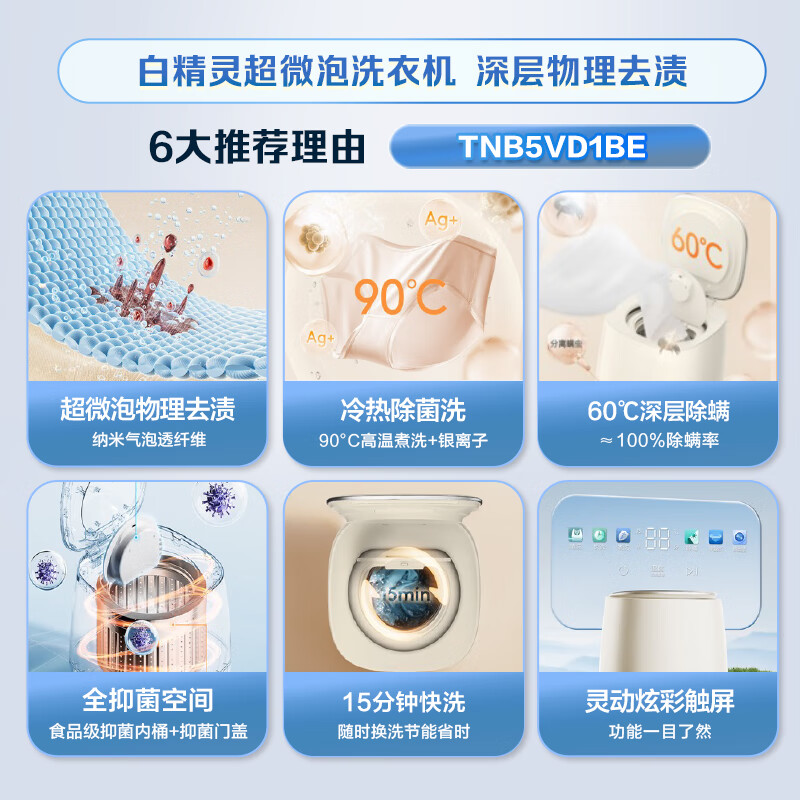 小天鹅(LittleSwan)内衣洗衣机全自动 迷你洗衣机小型 婴儿洗衣机 超微泡去渍 高温除菌 白精灵 TNB5VD1BE 到手价格1199元。