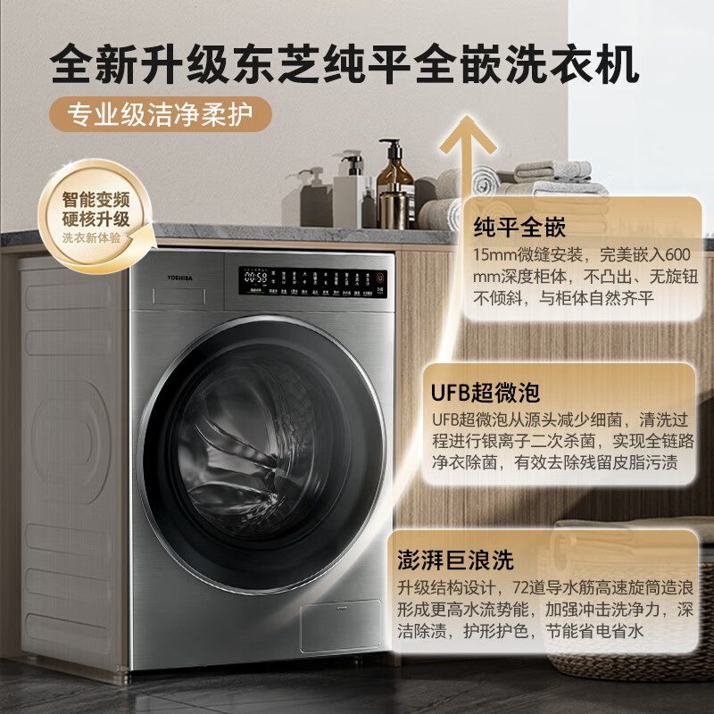 东芝(TOSHIBA)滚筒洗衣机全自动家用 流光银DG-10TC22BYV 纯平全嵌10公斤大容量 智投 以旧换新 家电国家补贴20%到手价格4099元。