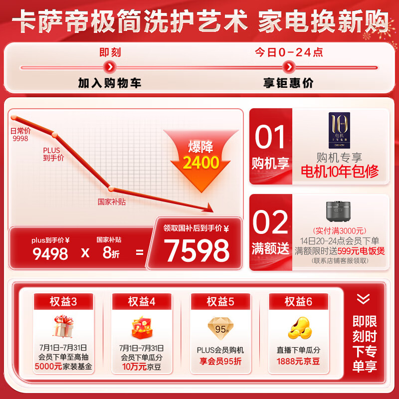 卡萨帝(Casarte)揽光P3洗烘套装 10KG直驱滚筒洗衣机全自动+热泵烘干机家用 以旧换新国家补贴20%10P3U1+10FP3到手价格9998元。