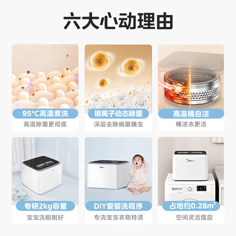 美的(Midea)2公斤迷你洗衣机家用波轮全自动 懒人洗衣机高温蒸煮特渍洗银离子除菌炫彩屏内衣洗衣机MNB20-01WQ到手价格1250.1元。
