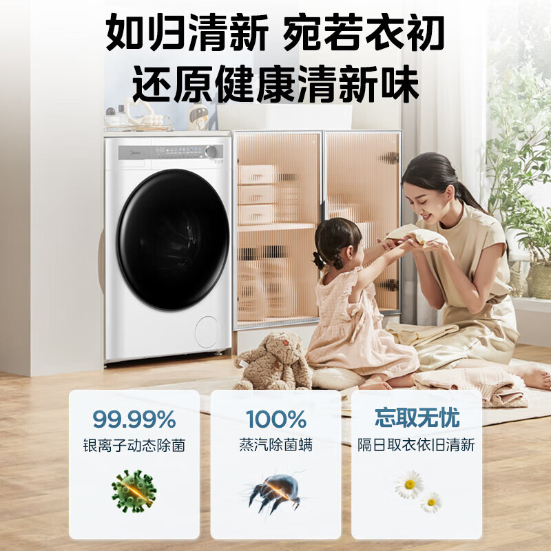美的(Midea)滚筒洗衣机全自动10KG大容量智能投放除螨银离子除菌超薄嵌入以旧换新家电国家补贴 MG100FS1 到手价格2149元。