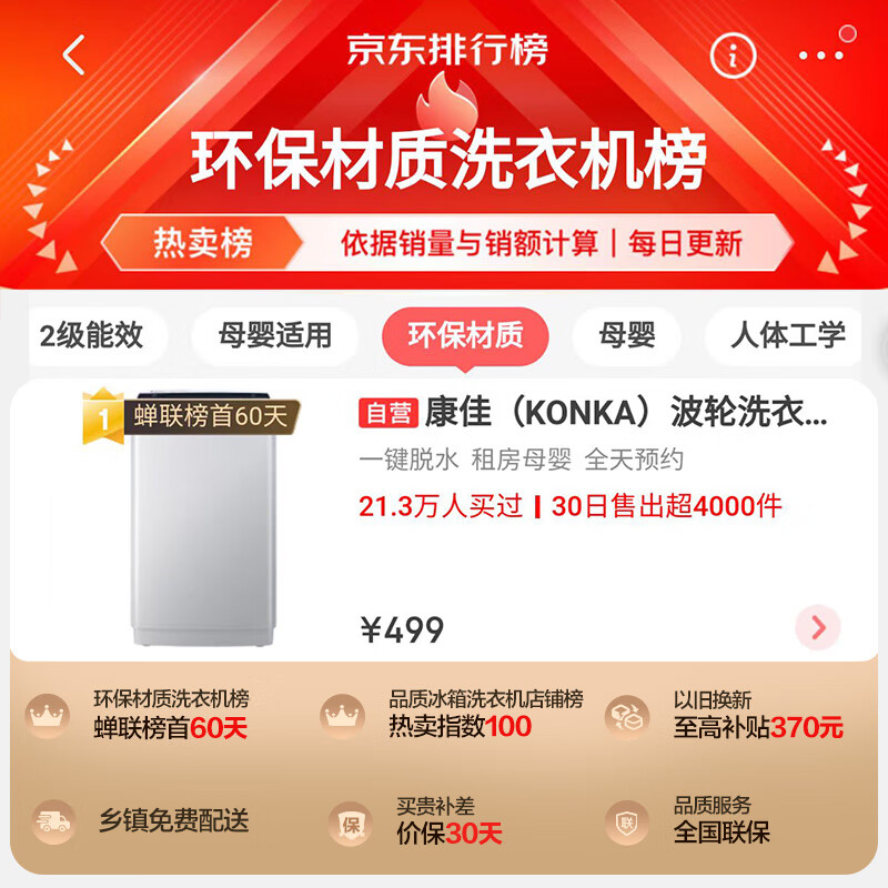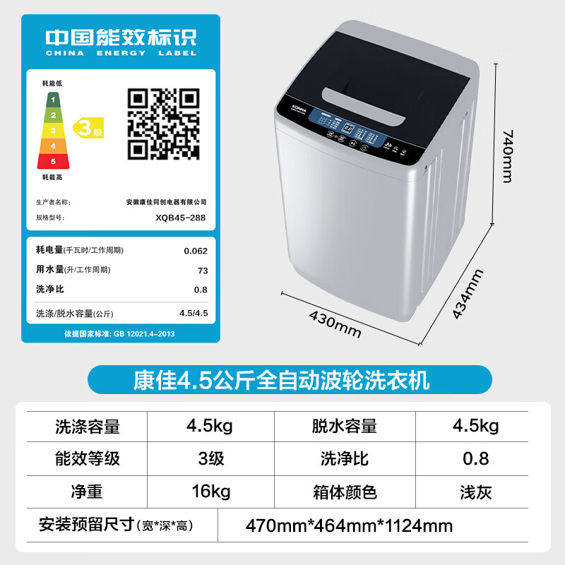 洗衣机康佳XQB45-288哪个好?区别是?其实这款康佳(KONKA)全自动4.5公斤 迷你婴儿洗小型儿童内衣波轮洗衣机 租房家用 以旧换新补贴 XQB45-288确实非常nice的,硬朗的设计和外观,做工细腻,有网友想了解这款康佳XQB45-288怎么样?评价如何?实实在在的说这个洗衣机康佳XQB45-288体验过一段时间后个人觉得蛮可以的哈,刚买不久的,老家之前一直用的是波轮洗衣机,除了外壳锈蚀,用了十几年也没修过,质量真没说的,这次以旧换新换了两台滚桶,功能非常齐全,带烘干功能,再也不怕阴雨天阴干衣服有异味了,洗衣机运行时声音非常小,衣物脱水也比原来脱的干,洗衣服时带烘干稍晾下就可以穿了,咨询客服也挺有耐心,有疑问回复快,值得推荐入手 洗衣机康佳XQB45-288白色机身配黑色大眼睛玻璃门,很耐看。容量很大,因为可能要洗窗帘,小的洗不下。这款尺寸超薄,机身更轻盈,不会看着笨笨的。 洗衣机外观设计小巧精致,美观实用,价格实惠,性价比高,容量二人使用足够了!快递也很给力! 很好的一款洗衣机,还有蓝光洗衣,感觉洗完衣服很干净,大小合适,可以省水,很喜欢,一家子四口适合用,会推荐给需要的亲朋。 快递到的很快,性价比也很高。安装师傅很快就上门安装了,非常喜欢非常满意。客服回答也很耐心