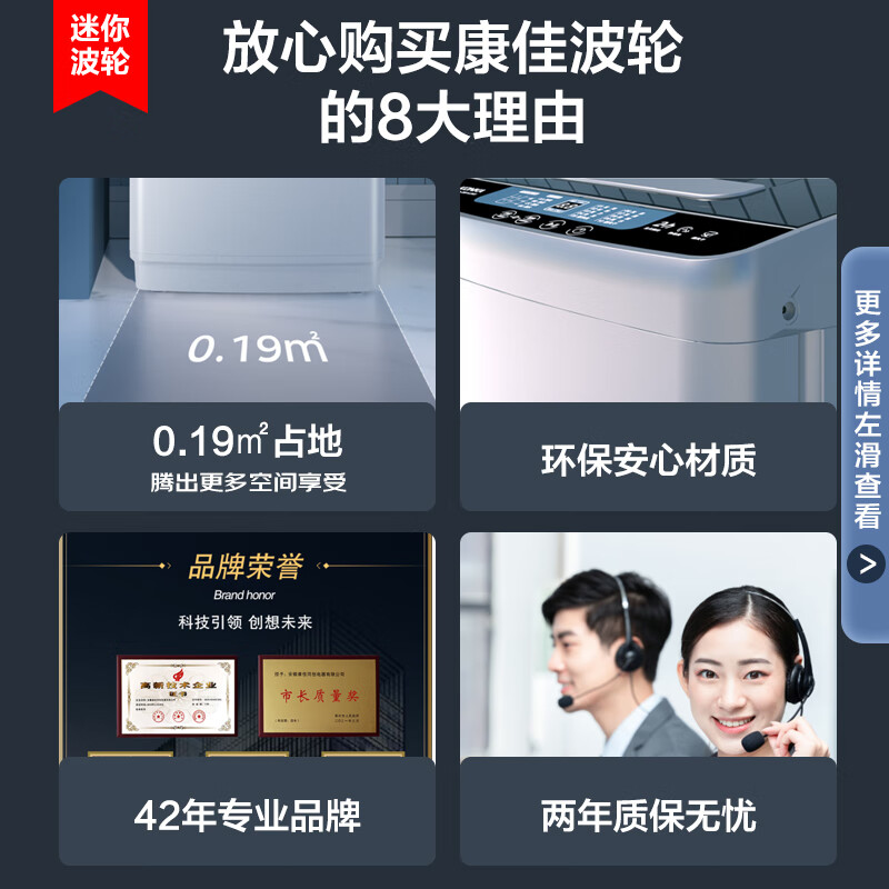 这款洗衣机真不错,节能高效,静音运行,洗涤效果干净如新,而且外观雅致,操作简便,小孩也能轻松驾驭,真是家庭洗衣的好帮手!放在地上小小一个,安装简单可以自己安装,很方便使用,模式很多,烘干完暖暖和和很舒服。洗衣机康佳XQB45-288这款洗衣机外观时尚大气,使用起来非常方便!? 洗净效果不错,衣服洗得又快又干净。操作简单易学,对家庭生活非常有帮助!很实惠,又实用,不愧为大牌子!除菌效果:好外形外观:漂亮洗净效果:很好容量大小:合适趁着优惠,赶紧入手,是正品,包装也非常的好,没有破损,质量也是没得说,棒?款式很大方,质量非常好,价钱也很合理非常喜欢