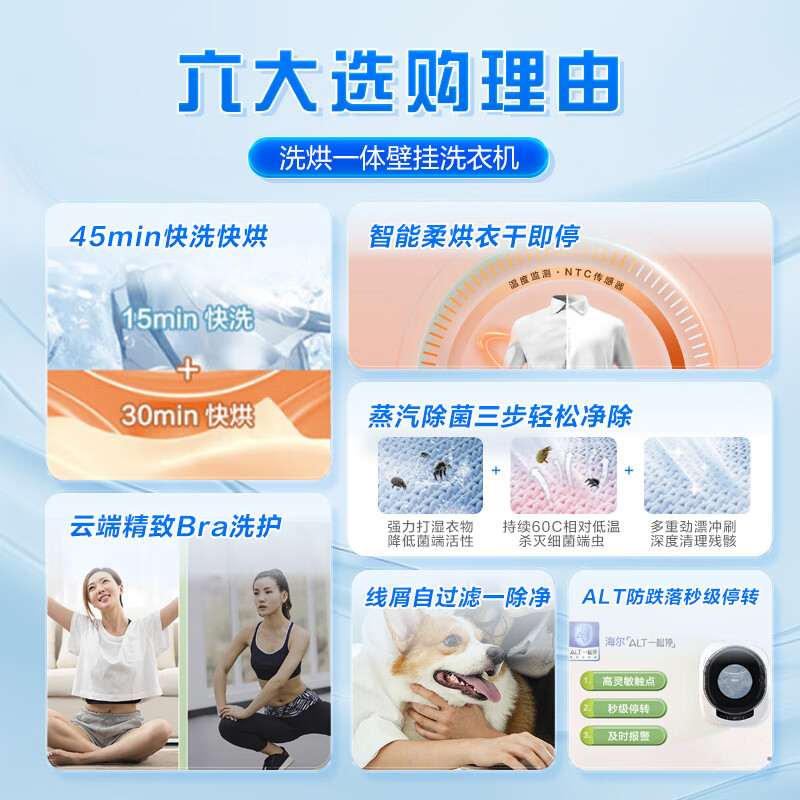 海尔(Haier)洗衣机小型全自动 内衣婴儿懒人洗衣机 壁挂洗烘一体家用 3KG除菌螨 国家补贴20% 一级能效云溪715到手价格2799元。