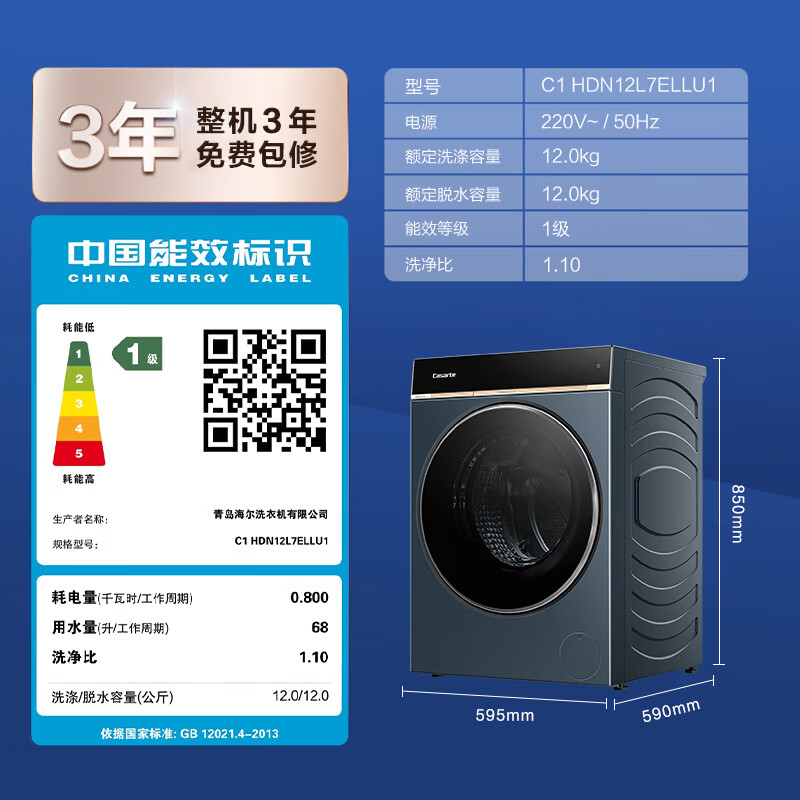 二、卡萨帝C1 HDN12L7ELLU1产品参数: