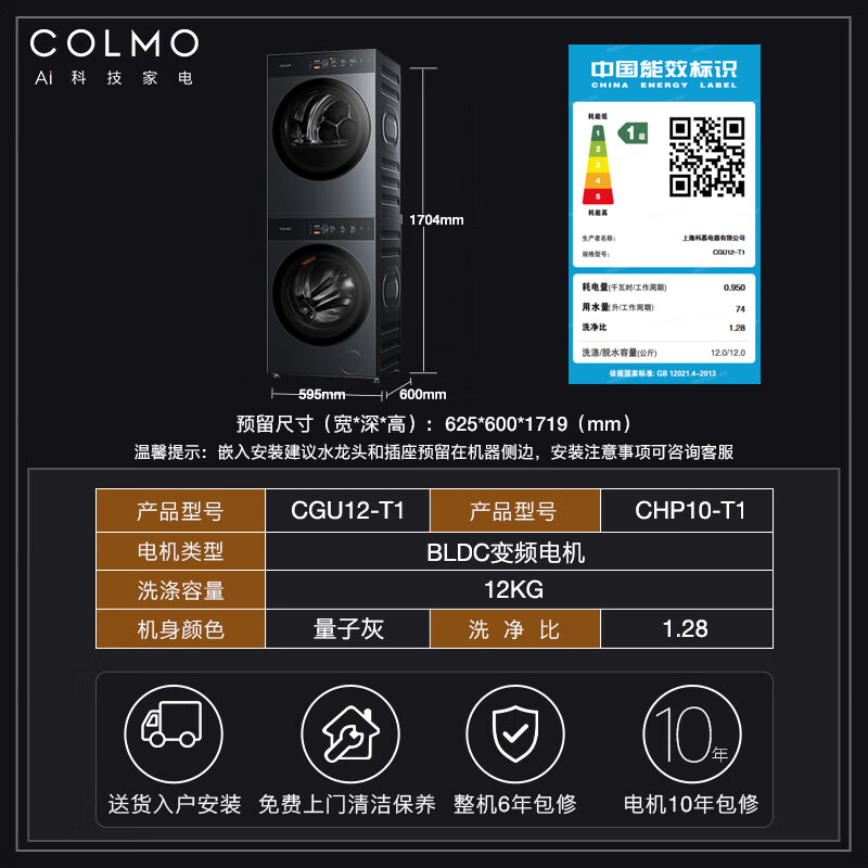 洗衣机COLMOCGU12-T1哪个好?有啥区别?其实这款COLMO图灵洗烘套装 国家补贴 12KG全自动洗衣机+热泵烘干机 净护柔洗 AI轻干洗2.0 CGU12-T1+CHP10-T1确实是蛮可以的哟,精致的造型设计风格,做工十分考究,很多朋友想了解这COLMOCGU12-T1怎么样?质量好不好?实实在在的说这个洗衣机COLMOCGU12-T1个人使用体验后觉得蛮可以的哈,刚买不久的,终于收到我需要的宝贝了,东西很好,价美物廉,谢谢掌柜的!说实在,这是我~购物来比较意的一次购物。无论是掌柜的态度还是对物品,我都非常满意的。宝贝,正是我需要的,打开后让我惊喜的是,宝贝比我想象中的还要好!不得不得竖起大拇指。下次需要的时候我还会再来的,到时候麻烦掌柜给个优惠哦! 洗衣机COLMOCGU12-T1这款小洗衣机颜值太高了,是我喜欢的绿的,安装方便,正好放在大洗衣机上,试了洗了一个浴巾,洗的很好,脱水时也不动,太喜欢了 质量很好,客服热情,实际宽度比标注宽度宽一点,主要是上沿的问题,注意家里的门是否能进。 超棒的洗衣机,非常经典的一款洗衣机,操作简单又实用,功能齐全,价格也不贵,也不占地,非常推荐大家购买,以后还会买的洗衣机 外形外观:好看,简约大气除菌效果:非常好,衣服洗完很干净洗净效果:非常静音,清洗效果好