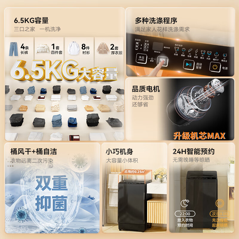 床单被套都能塞进去洗,直驱电机还十分安静,放在浴室基本听不到噪音,洗衣效果也不错,十分推荐!外观材质高颜值,家里都很喜欢。洗衣机收到了,质量很好,做工精细,颜色漂亮,很喜欢还有蓝光除菌,在限功率的宿舍也能用。洗衣机荣事达ERVP191013T外观时尚,用料扎实,自动投放很方便,洗出来的衣服非常干净,烘干的衣服也没有皱,洗烘一起只要个多小时,整体来说十分推荐效果一般、还有盖板弹得太快、慢慢打开、盖回就好、不知道有优浼可换?还有脱水时声音太大。包装很精细,送货上门,物流超级给力,很小巧的一个,不占地方,用来洗宝宝的衣服刚刚好,洗起来声音也很小的,客服回复也很迅速