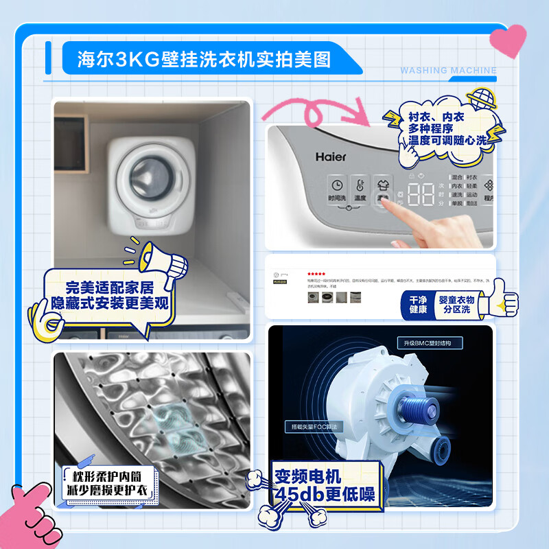 海尔(Haier)壁挂洗衣机小型全自动 内衣裤婴儿儿童挂壁式 3KG高温除菌 一级能效以旧换新国家补贴20% EGM30707到手价格1399元。