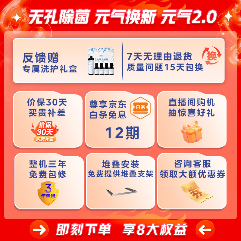 美的(Midea)元气2.0洗烘套装 10KG滚筒洗衣机+变频热泵烘干机 智能投放 纯平全嵌 MG10L5PRO+L5PRO 国家补贴到手价格7099元。