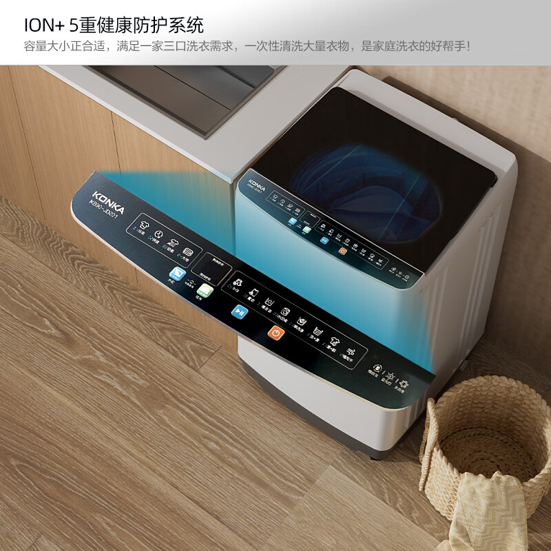 康佳KB90-JD201买了给家里爸妈用,外观很时尚,功能也很多,比普通的滚筒小很多不占地,正在等待安装师傅安装完。估计爸妈要摆弄一下午了哈哈哈很好了,洗衣机真的很省空间,放在家里刚刚好。使用起来也很方便,洗得干净,节省了不少时间。这次的洗衣机也非常好,价格很实惠,容量大小合适,非常好的卖家,已经推荐给我周边房东,他们应该也会很快跟店家买一批洗衣机了。真的是很棒的,洗衣再也不烦恼了。桶自洁功能真实用,省心又省力,洗完衣服感觉干净清爽!这款洗衣机颜值很高,智能操控,声音不大,而且还能高温煮洗消毒,效果不错 ,价格合理,性价比高,安装很快。推荐大家购买哈!