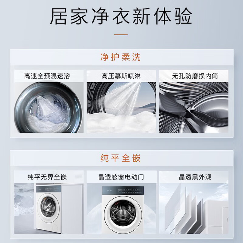COLMOCGU10W-HS1K孩子大人分开洗,一台机器两种用法,省下不少地方,声音很小颜值很高,安装师傅耐心安装并且降解使用说明注意事项!比预期要好很多效果挺好的,用起来还是很静音的,前面用的也是这个牌子的,用了十年,总体来说,还是杠杠的这款洗衣机真是太方便了,完全告别了手洗的烦恼。洗衣服只需按个按钮,省时省力,衣服洗得也很干净,真是家里必备的好帮手!老款洗衣机用了十几年光荣下岗,这款比老款的薄,外观时尚、功能也多。目前用起来感觉不错!的洗衣机该说不说颜值也太高了,功能也全,性价比也很高,噪音也不大,越看越喜欢,还买了管线机,冰箱,还会再入手这个品牌的