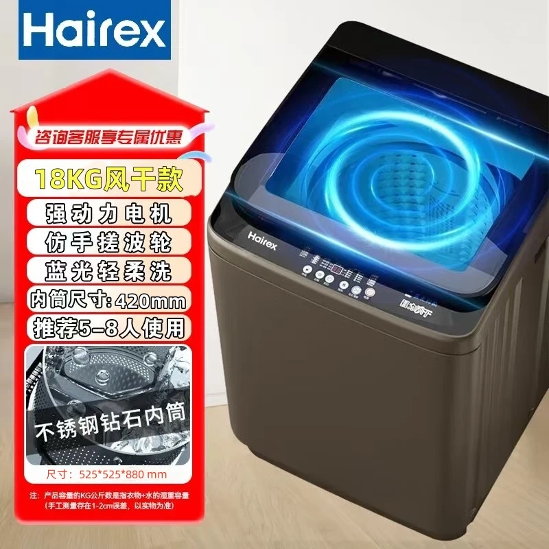 Haire x洗衣机全自动波轮15公斤大容量波轮家用20公斤宿舍出租屋酒店智能蓝光洗脱一体 18公斤【一键洗涤+强力风干+桶自洁】到手价格599元。