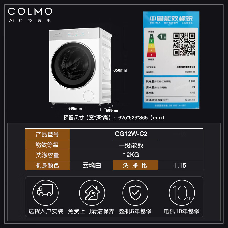 二、COLMO洗衣机CG12W-C2产品参数:
