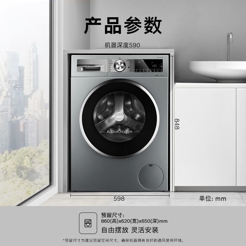 博世(BOSCH)【健康活氧】4系10公斤全自动家用变频大容量除菌除螨祛味滚筒洗衣机WGA154E80W到手价格6999元。