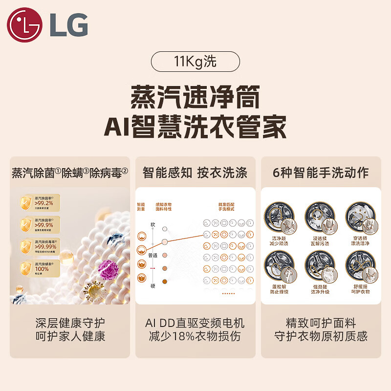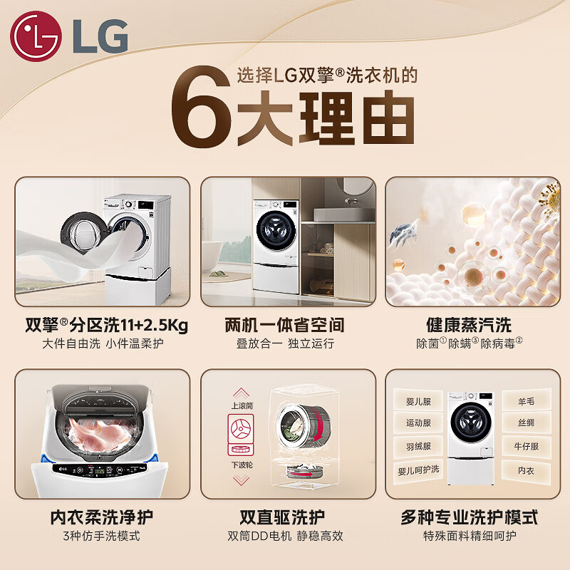 LG母婴双擎 迷你滚筒洗衣机全自动11KG+2.5KG小型婴儿波轮内衣洗衣机 懒人分区洗 以旧换新FY13WYW到手价格7319元。