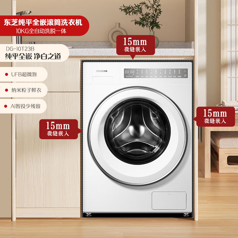 东芝(TOSHIBA)滚筒洗衣机全自动家用【白珍珠 DG-10T23B】纯平全嵌10公斤大容量 智投 以旧换新 家电国家补贴20%到手价格4999元。