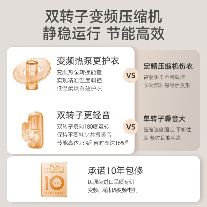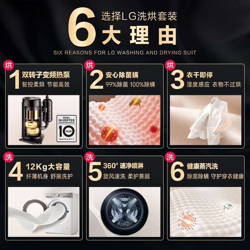 LG小旋风MAX洗烘套装 12kg滚筒洗衣机+10kg双变频烘干机 FCW12Y4PA+RH10V9PV2WR银 国家补贴以旧换新到手价格12698元。