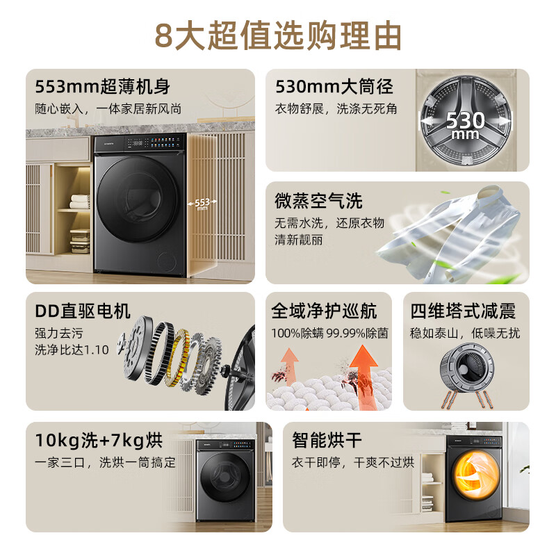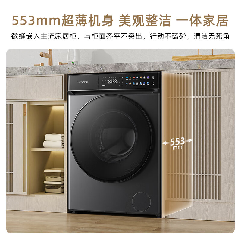 创维10公斤滚筒全自动洗烘一体洗衣机直驱变频530mm超大筒径【送装一体】家电国家补贴XQG100-B61KDH到手价格1599元。