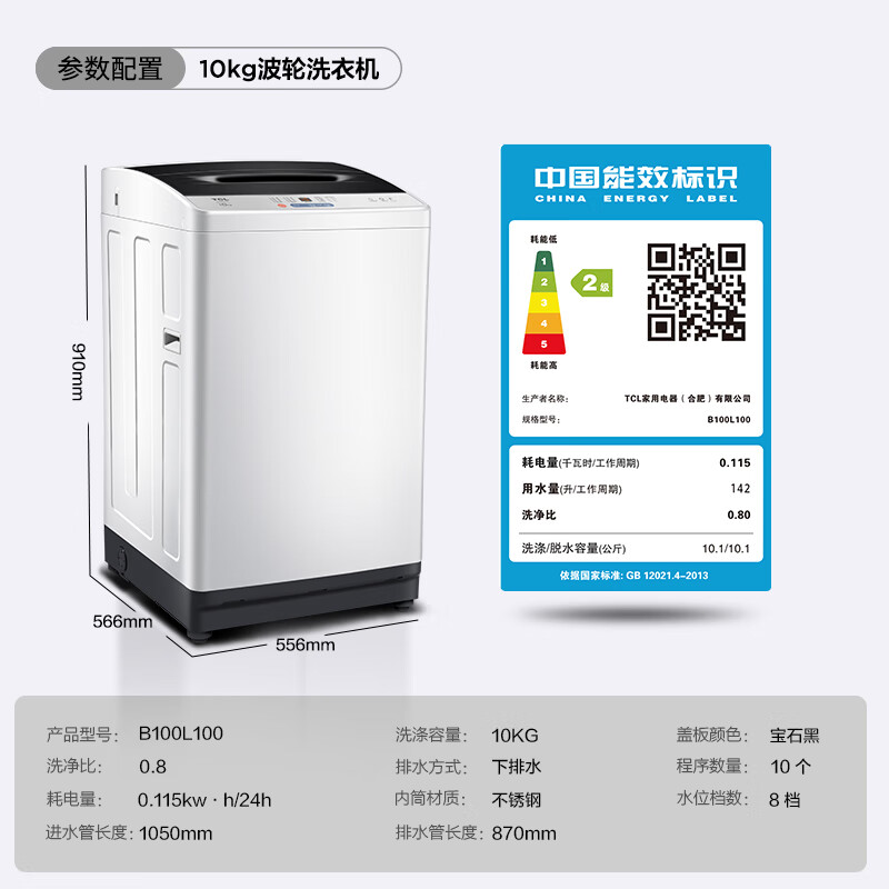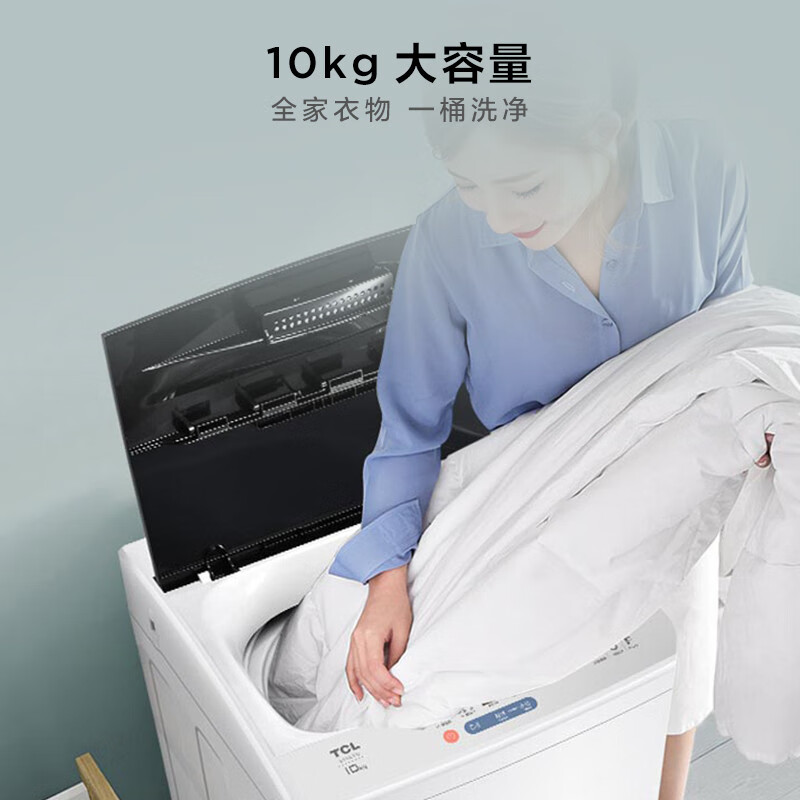 TCL 10公斤大容量波轮洗衣机L100四重智控 全自动家用 家电国家补贴 以旧换新 送装一体B100L100到手价格699元。