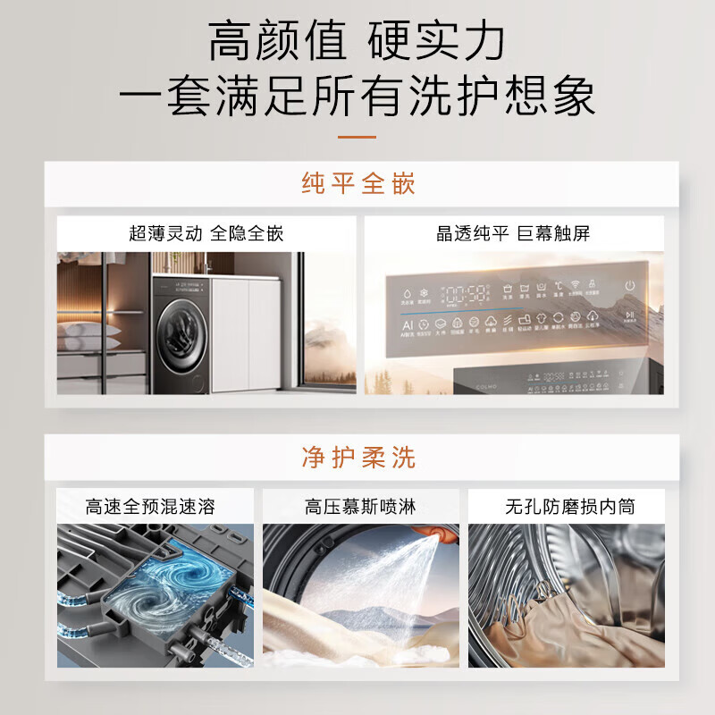 COLMO洗烘套装 大容量变频滚筒洗衣机净护柔洗五重毛屑过滤变频精控匀烘CGU12-A11+CHZ10-A11(京专)到手价格15498元。