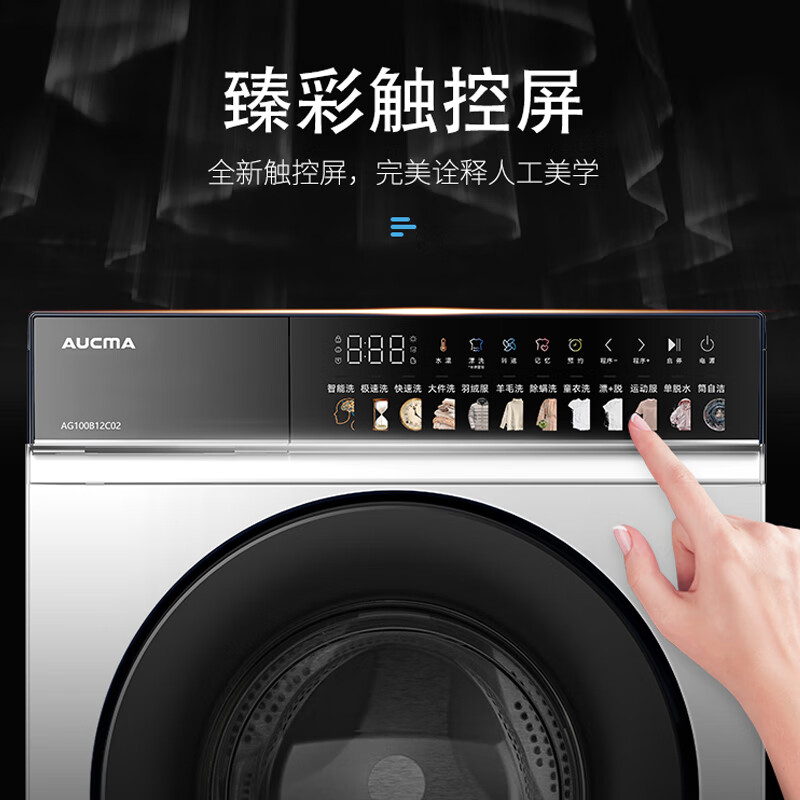 一级能效,容积非常大,价格也很实惠,外观非常上档次,送过来物流也很快,安装非常方便,使用过几次,功能很强大,用着非常方便。已经用了一段时间了,很可以,送货上门,产品也很好,售后很及时,租房一两个人使用正合适洗衣机澳柯玛AG100B12C02给宝宝准备的,今天终于安装好了,颜值很高。和大人的衣物分开洗,很卫生。这款有高温蒸煮功能,很满意。洗衣机工作声音也比较小。外形外观:颜值满分!洗净效果:洗净比.洗得很干净!功能强大,还带线屑收集的,很满意!头天下单第二天就送货上门了,非常快,送货前会有电话提前通知,很细心。安装的也很快,预约一个小时就有师傅上门安装了,非常好