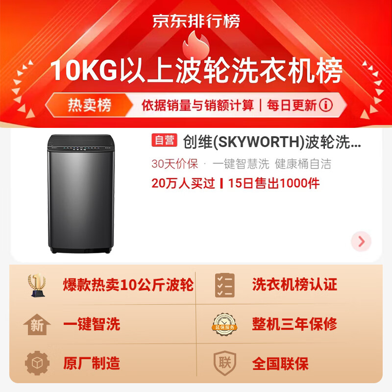 给出租屋上的洗衣机,租户很满意说界面功能很全,洗衣服很方便,容量也不错。物流也很方便直接给送到家,旧机器也给带走了,点赞。好,上门安装很快,刚装好简单试了下,声音比较小,功能也全,具体待用,还有,现在是了。洗衣机创维T100K洗衣机,挺好的,很满意给五星好评!外形外观:很好洗净效果:挺好的,洗的干净,很快就烘干容量大小:够大除菌效果:很好,外形外观:大气上档次,洗净效果:刚试了试洗的干净容量大小:容量相当大,就看外观就很大气购买了这款全自动洗衣机,真的很省心。蓝光洗护功能让衣物更干净,一体机设计省空间,大容量满足全家需求。每次洗衣都快速又方便。