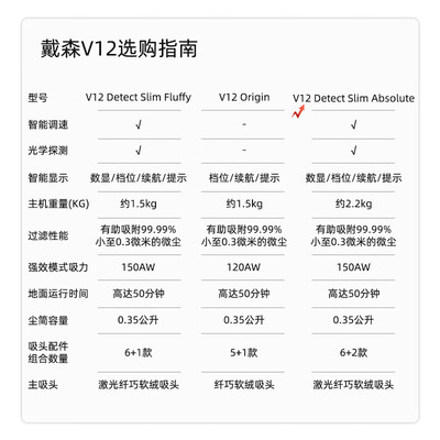 二、戴森(DYSON)V12 Detect Slim Absolute产品参数: