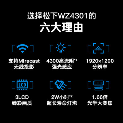 松下(Panasonic)PT-WZ4301投影仪 投影机办公室白天培训会议家用家庭影院(全高清 4300高流明 )目前活动价:7805元!