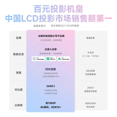 小明投影仪Q5 Pro配置参数: