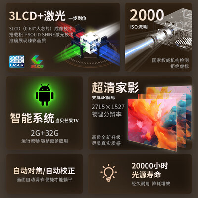 松下(Panasonic)PT-P20C激光投影仪 白天家用办公投影机 智能家庭影院客厅卧室4K解码大屏电视 国家补贴目前活动价:7499元!