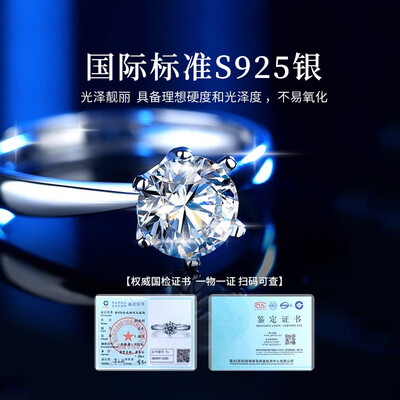 米乐琪【配证书】925银莫桑石单钻戒指女一克拉求订结婚情侣告白生日七夕情人节礼物送女友老婆纪念日表白 六爪皇冠2克拉+LED灯盒到手价格359.0元。