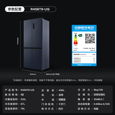 TCL大无界456升T9哪个好?区别大吗?这两款TCL大无界456升T9和TCL冰箱458升T5区别还是有的哈,经过对比我选择的是TCL大无界456升T9,这个TCL大无界456升T9在性能方面还是要好些的,整体质感不错,说实话这款TCL大无界456升T9十字四开门58cm超薄平嵌入式底部散热双净味电冰箱国家补贴风冷一级能效R456T9-UQ蛮不错的哟,做工很细腻,刚买不久的,外形外观:简洁大气上档次,小屏幕显示的很清晰制冷效果:非常非常好,空间也大保鲜效果:保鲜效果杠杠的容量大小:容量真的很大,以旧换新:超级方便,先回收马上发货,第二天就到了。 TCL大无界456升T9白色的挺好看的,面板是一条条的纹路,摸起来挺不错,多的容积,蛴昧耍制冷保鲜效果也不错,到时候再用久一点看看。 外形外观:美观大气制冷效果:非常好保鲜效果:持久新鲜容量大小:容量大 冰箱不错很好,柜子木工师傅打小了选了这款还比较完美外形外观:漂亮制冷效果:好保鲜效果:好容量大小:大小正好用 冰箱很棒,下单第二天就到了,用了一段时间才来评价的,很满意的一次购物。 冰箱已收到,物流很给力,外观好看大气,用了几天效果很好,不错的选择。