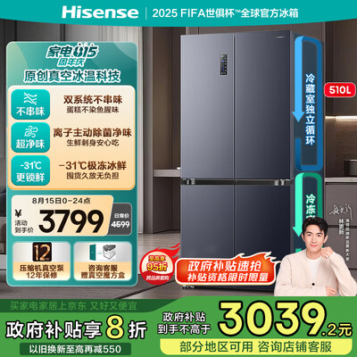海信璀璨503U6真空冰箱超薄零嵌入式十字门四开门冰箱DBD离子主动除菌国家补贴TR-503U6CZKQD目前活动价:7199.2元!