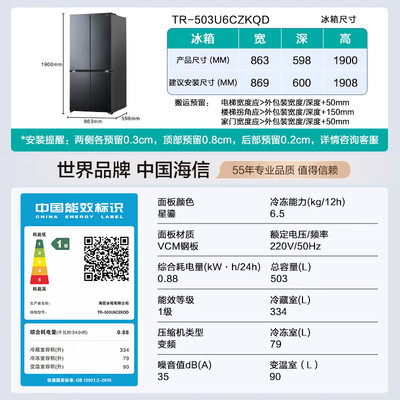 海信璀璨503U6哪个好?区别有没有?两个海信璀璨503U6和海信冰箱510真空魔方区别还是有的哟,通过对比后我订的是海信璀璨503U6,这个海信璀璨503U6在性能方面还是要好些的,看着相当大气,说实在的这个海信璀璨503U6真空冰箱超薄零嵌入式十字门四开门冰箱DBD离子主动除菌国家补贴TR-503U6CZKQD确实非常nice的,做工非常讲究,刚购不久的,家里面的老冰箱老是结冻每次都要除冻很麻烦,想着换一个好一点的,在实体店看了很久才看上这款,空间确实很大,设计也比较合理,后面京东看到有同款的而且优惠力度很大。非常推荐大家买 海信璀璨503U6不错挺好的,冷藏冷冻快速,声音不算太大还能接受,农田里使用,便宜不贵,空间足够大,还不错推荐临时用的都可以用 这款冰箱真的很不错,大容量的设计可以放下很多食材非常实用,外观也很漂亮。 特别喜欢这款. 因为薄皮大馅儿 冷冻足足 比它大的别的牌子都没有这么大的冷冻区 相当于一个大冰柜 满分? 冰箱颜色很正,制冷效果很好,插电十多分钟就感到凉,储存空间很大,很满意。 配送神速,外观无损,当场开箱,产品完好,经试运行,噪音极低,制冷效果好!