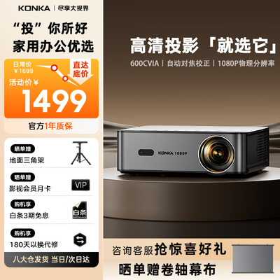 康佳(KONKA)C2pro 云台投影仪家用 高清便捷家庭影院 卧室投影机(上下自动梯形校正 高亮260lm 360度云台)目前活动价:499元!