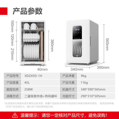 德玛仕(DEMASHI)XDZ45D-3Z颜值在线,内部空间大,外部占地面积小,中号菜板都能放下去。每天一消毒,让洁癖患者心里很舒服?满分做工精细,外观亮丽,功能齐全,效果奇佳!小巧超薄不占地方,简单容易操作,颜值高。已经推荐给朋友了!做了好久的功课了才决定下到这个消毒柜真的蛮好的颜值很高用了几天了消毒很方便我妈不会操作直接喊两声小德小德然后下命令就可以开始消毒了现在虽然说疫情过了高峰期但是还是要提高警惕该消毒还是得消毒的!下面还有一个接水盘但尽量还是擦下水吧