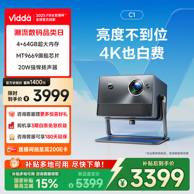 Vidda C2至臻版 海信4K超高清三色激光云台投影仪家用100吋家庭影院电视(莱茵0有害蓝光)国家补贴目前活动价:4599元!