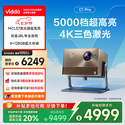 海信(Hisense)Vidda C2Pro C2S C2Ultra 4K超亮高清 投影仪家用三色激光 Vidda C2S目前活动价:10580元!