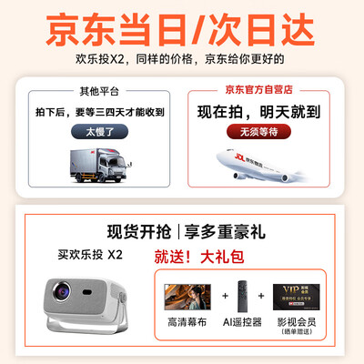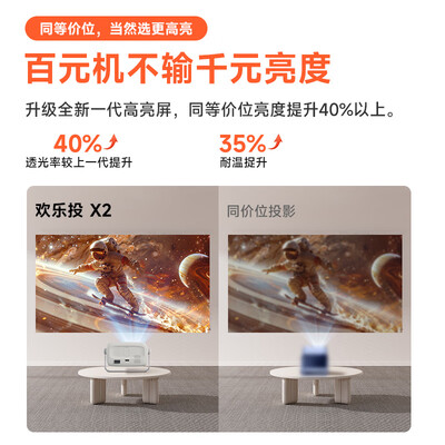 欢乐投投影仪X2哪个好?有区别没有?欢乐投投影仪X2第次买了,效果非常好,亮度明显比其他家同类产品要高,好多贴心的小功能投屏等等。以后会继续支持。购买投影机很好,很清晰,音质很好,物流也很快,开始不懂安装,售后很耐心的讲解,态度很好,很满意的一次购物。效果出乎意料的好,配件齐全,还多给条电源线,刘明都很可以,不拉窗帘也很清晰。效果太棒了,上手操作很容易,机器运行速度很快,流畅不卡顿,智能语音反应也很好清晰度不错,还可以自动调整画面,小白也可以操作,按照步骤来很方便。推荐购买!使用一段时间看看再追评。