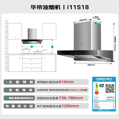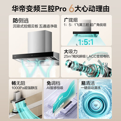 华帝(VATTI)国家补贴20%三腔抽油烟机双子星欧式家用变频25.5风量大吸力自动清洗一级能效脱排油烟机 i11S18目前活动价:1999.2元!