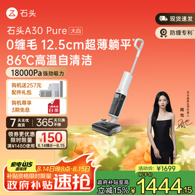 石头A30 CE洗地机【高温除菌0缠毛超薄躺平】A30Pro CE系扫地机器人自动清洗洗拖吸一体吸尘器国家补贴目前活动价:1231.65元!