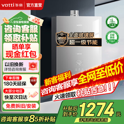 华帝(VATTI)官方16升燃气热水器天然气【国家补贴15%】一级节能水伺服级恒温一级静音玻璃屏i12152-16以旧换新目前活动价:1189.15元!