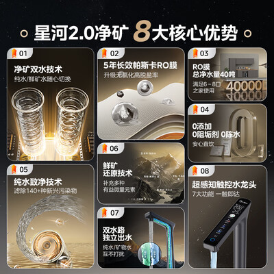 美的(Midea)家用净水机星河2.0净矿净水器双水直饮1000G5年RO矿物质0阻垢剂 反渗透厨下式净饮机pro升级款系列目前活动价:2399.2元!