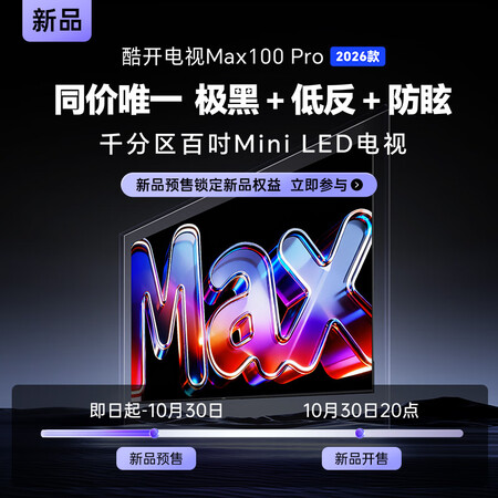 酷开创维Max100Pro 2026款+A700回音壁 千分区Mini LED黑曜屏Pro 智能平板电视机音响套装 100P5F Pro目前活动价:?9?元!