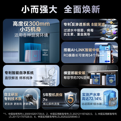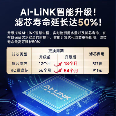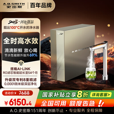 史密斯(A.O.SMITH) 净水器家用AI-LiNK 家用厨下式直饮净水机净饮机专利反渗透系统小体积安装不受限银河Pro国家补贴目前活动价:4588元!