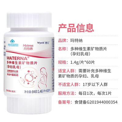 用过解密玛特纳(MATERNA)多种维生素矿物质片是不是真的好用?看看半个月经验分享!说真心话这个玛特纳孕妇维生素惠氏中国版孕产妇富硒叶酸钙铁锌备孕怀孕哺乳期营养 全孕期180天量还可以的 哟,朋友推荐的,备孕期间吃这个比较好,营养很丰富 使用效果非常好,没想到能从网上买到这么好的产品 玛特纳(MATERNA)孕期营养易吞食,每天一颗,吃了一个多月,明显感觉指甲长得特别快哈哈包装严实日期新鲜,和实体店的一样,这个便宜很多性价比很高